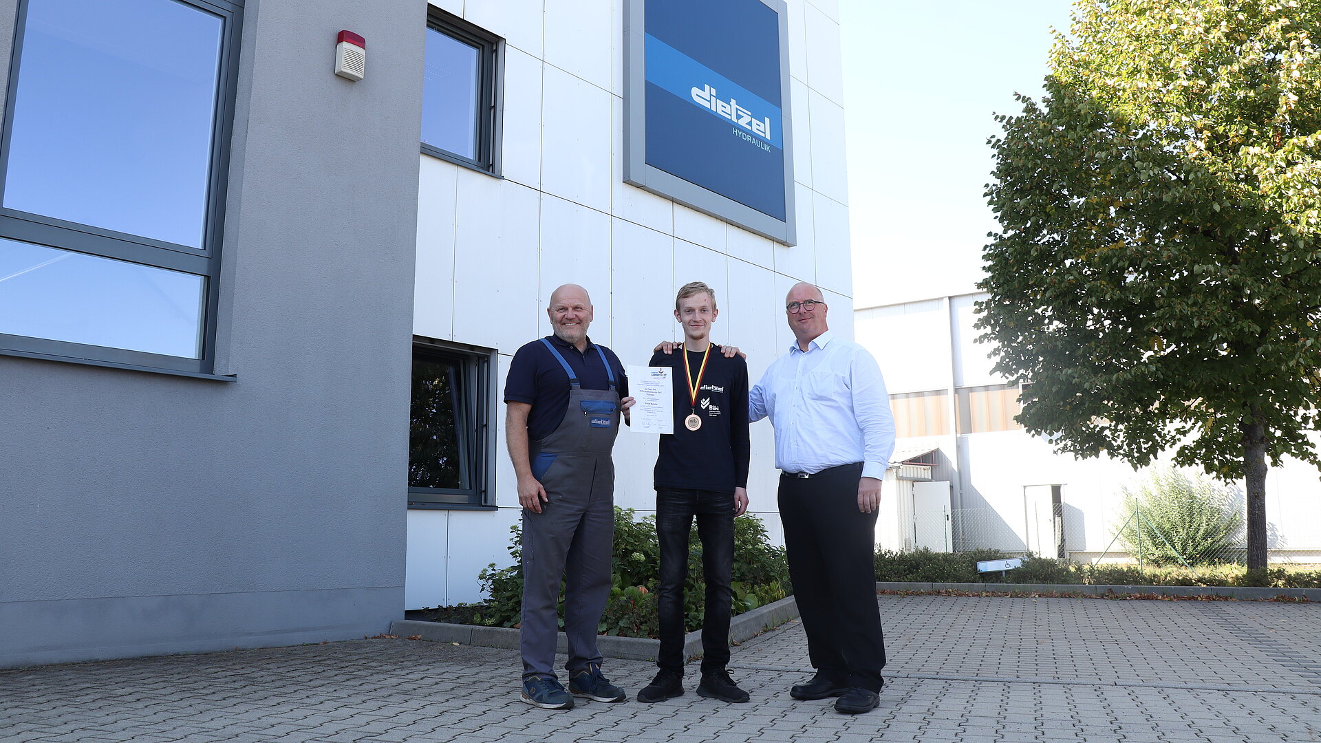 Das gab es noch nie in der Geschichte von Dietzel. Ein Dietzel-Azubi hat sich für den 14.Bundeswettbewerb "Jugend schweißt". qualifiziert. Unser Azubi Janis trat zusammen mit 3 weiteren jungen Schweißern im Team Thüringen an. Dies bestand aus 2 Azubis vom Schachtbau Nordhausen und Chris vom Bildungswerk Gera. Gemeinsam schweißte das Thüringer-Team im Finale an einem Werkstück, welches anschließend einer 50-Bar Druckprüfung unterzogen wurde. Nach vier spannenden und ereignisreichen Tagen beim Bundesfinale in Essen konnte sich das Thüringen Team die Bronzemedaille erkämpfen. Das "Jugend schweißt" - Abenteuer startete bereits im März mit der teilnahme am Bezirkswettbewerb in Rudolstadt. Gemeinsam qualifizierte sich Janis dort mit 2 weiteren Dietzel-Azubis und Chris für den Landeswettbewerb in Nordhausen. Letztendlich schafften es Janis und Chris, sich für das Bundesfinale zu qualifizieren. Wir sind sehr stolz auf unseren Dietzelianer und das Thüringer Team.